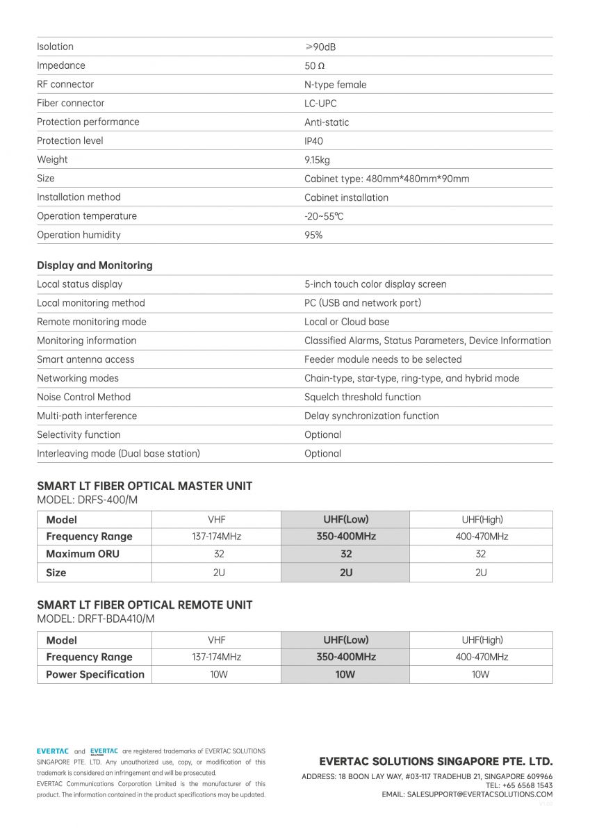 Smart LT Fiber Optical Master Remote Unit【DRFT-BDA410/M】350-400MHz